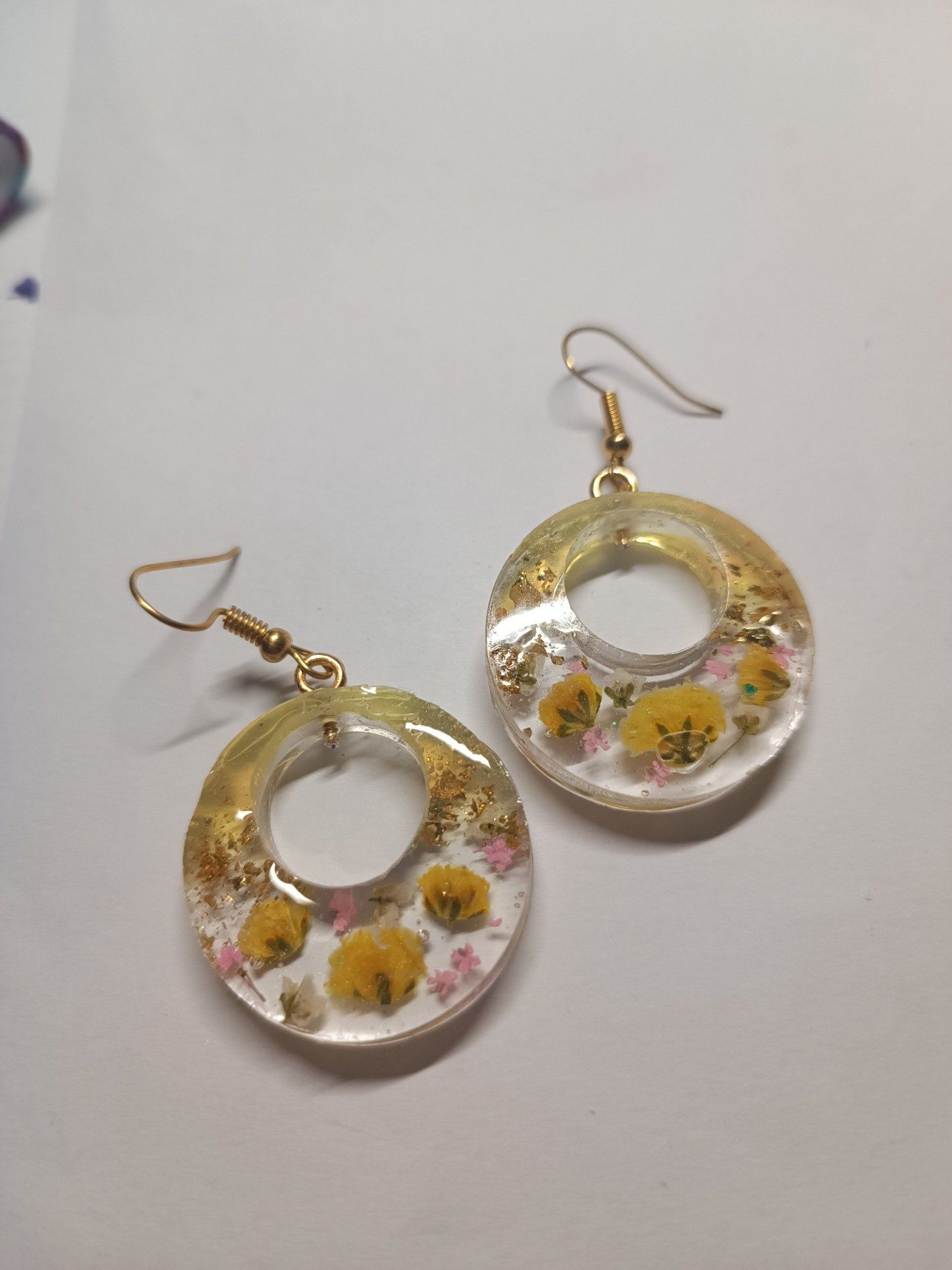 Fleurs séchées et feuilles doré dans resine