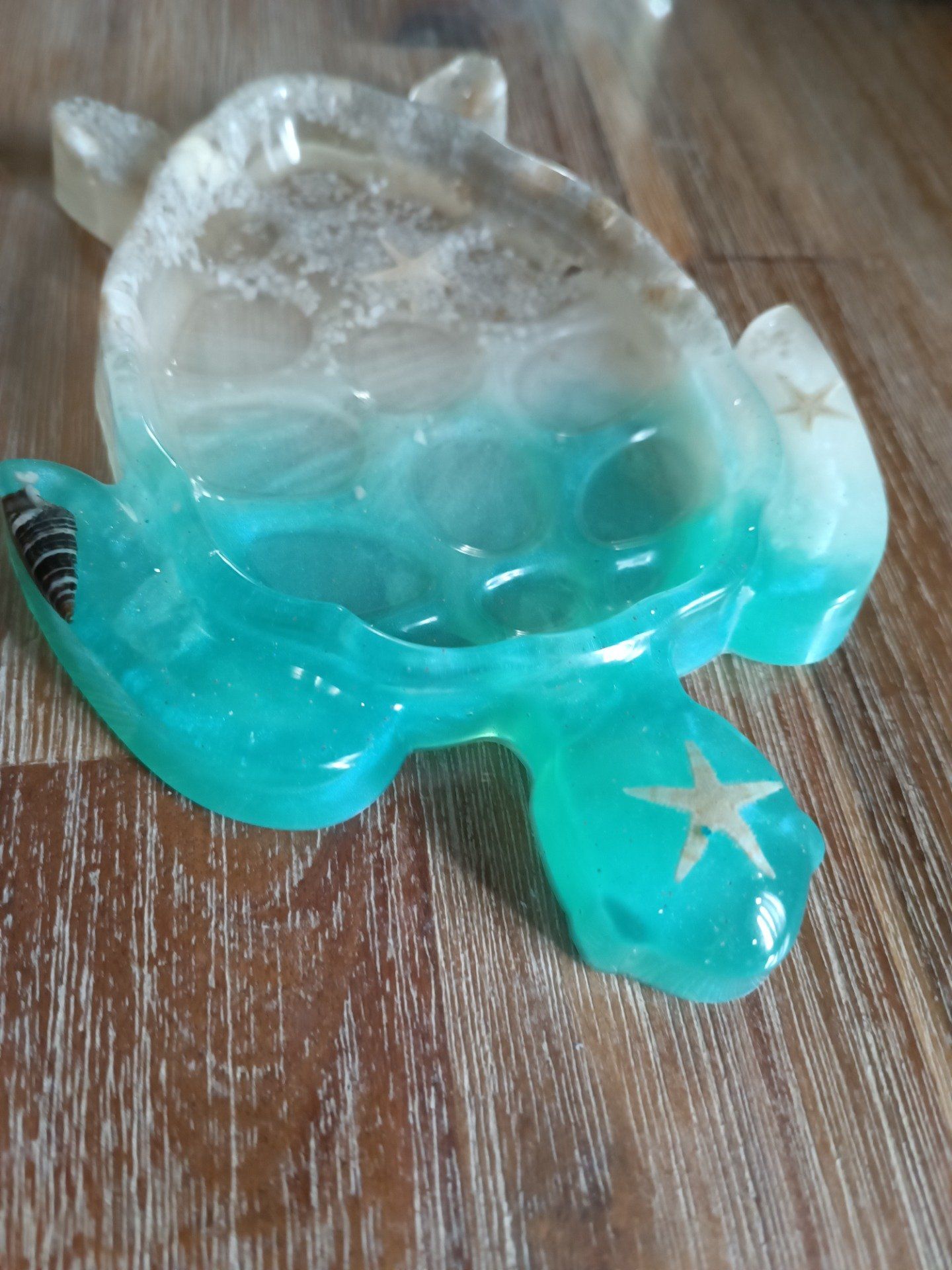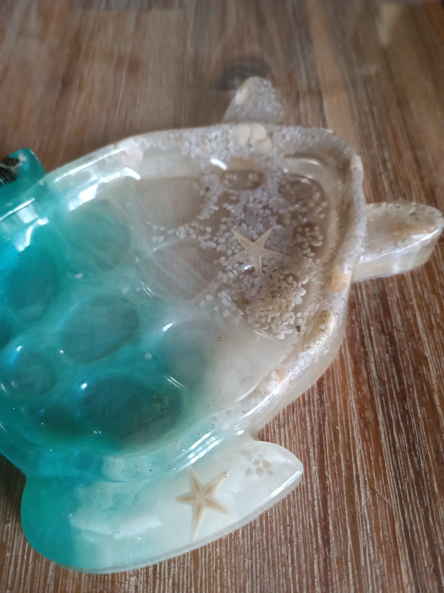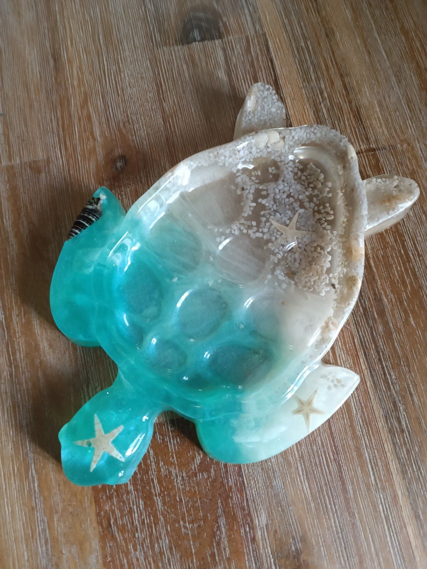 Coquillages et sable dans resine
